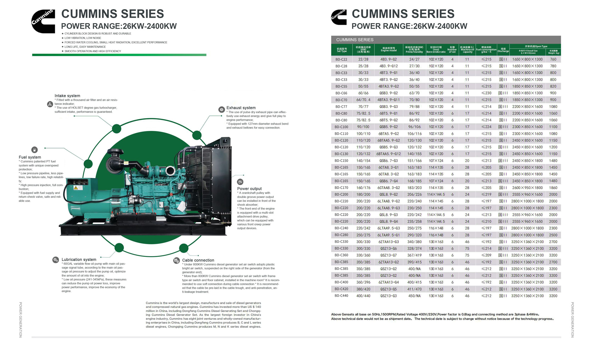 موتور Cummins: طراحی صنعتی، Tropical Radiator، راندمان بالا، سری‌های مختلف تا 2500+ kVA